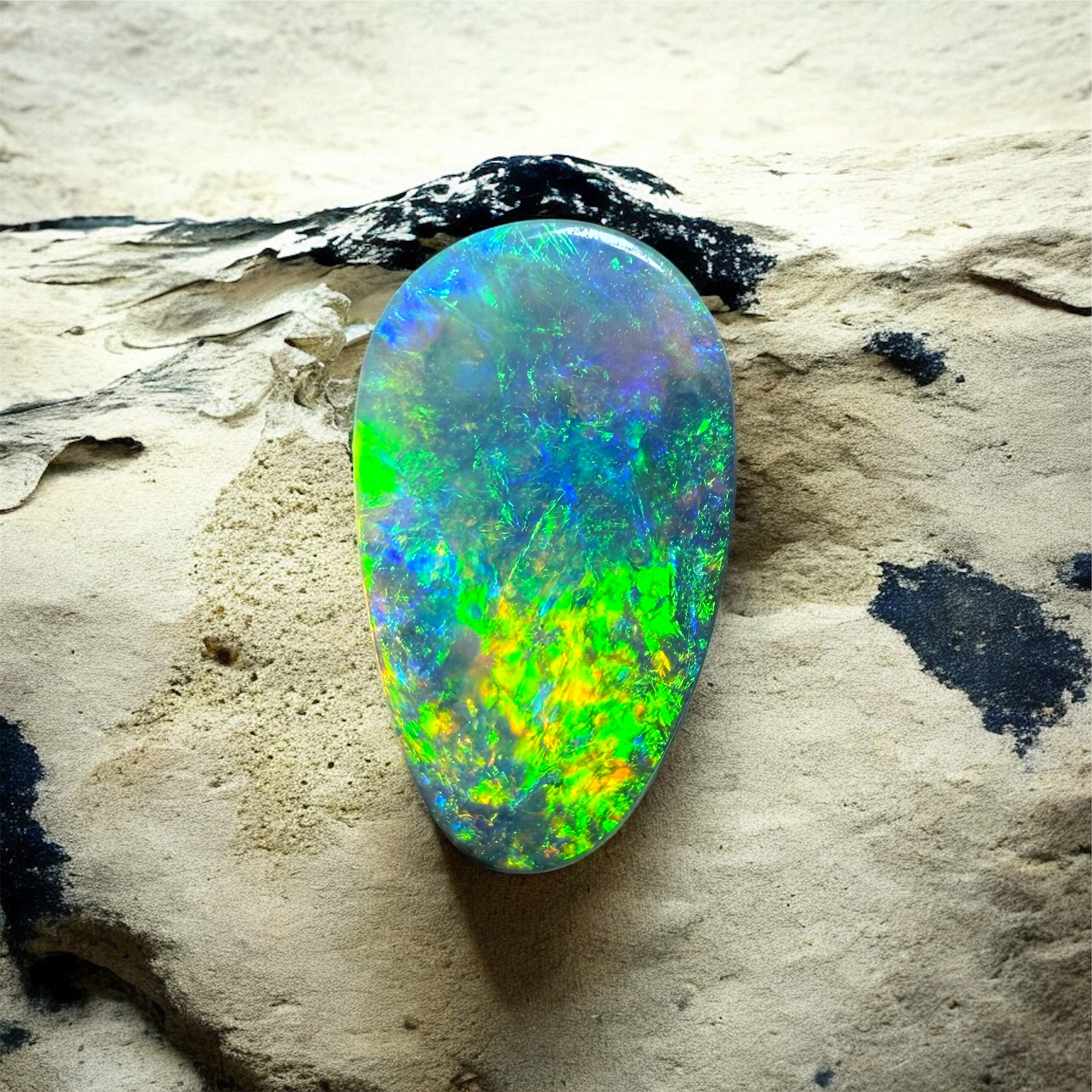 From one angle to the next, this blissful black opal continuously displays its colourful parade.