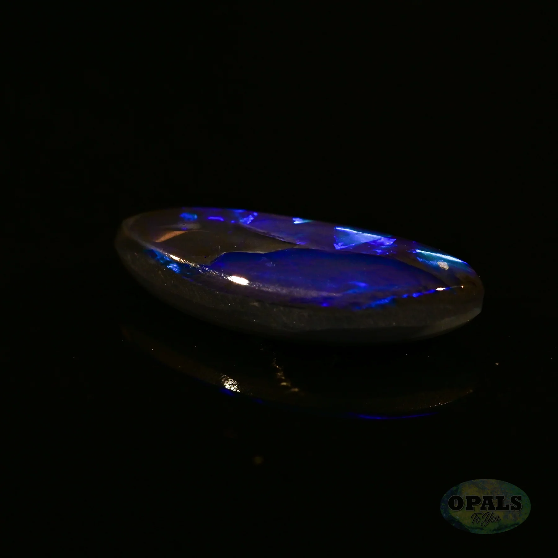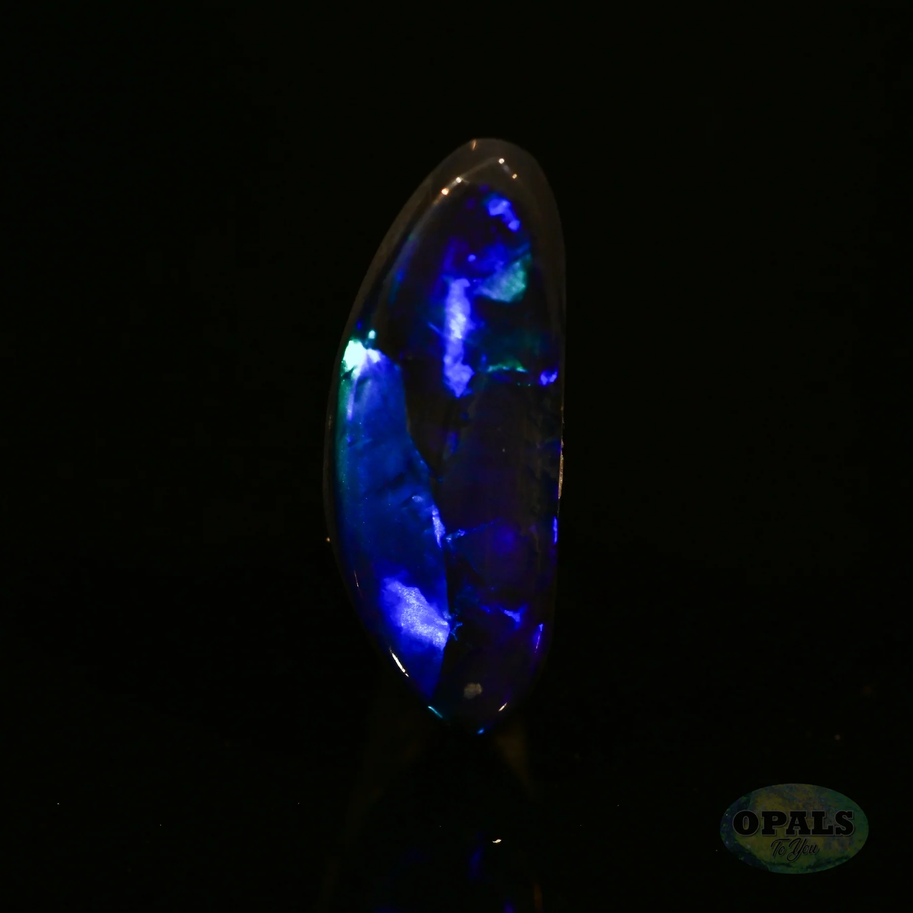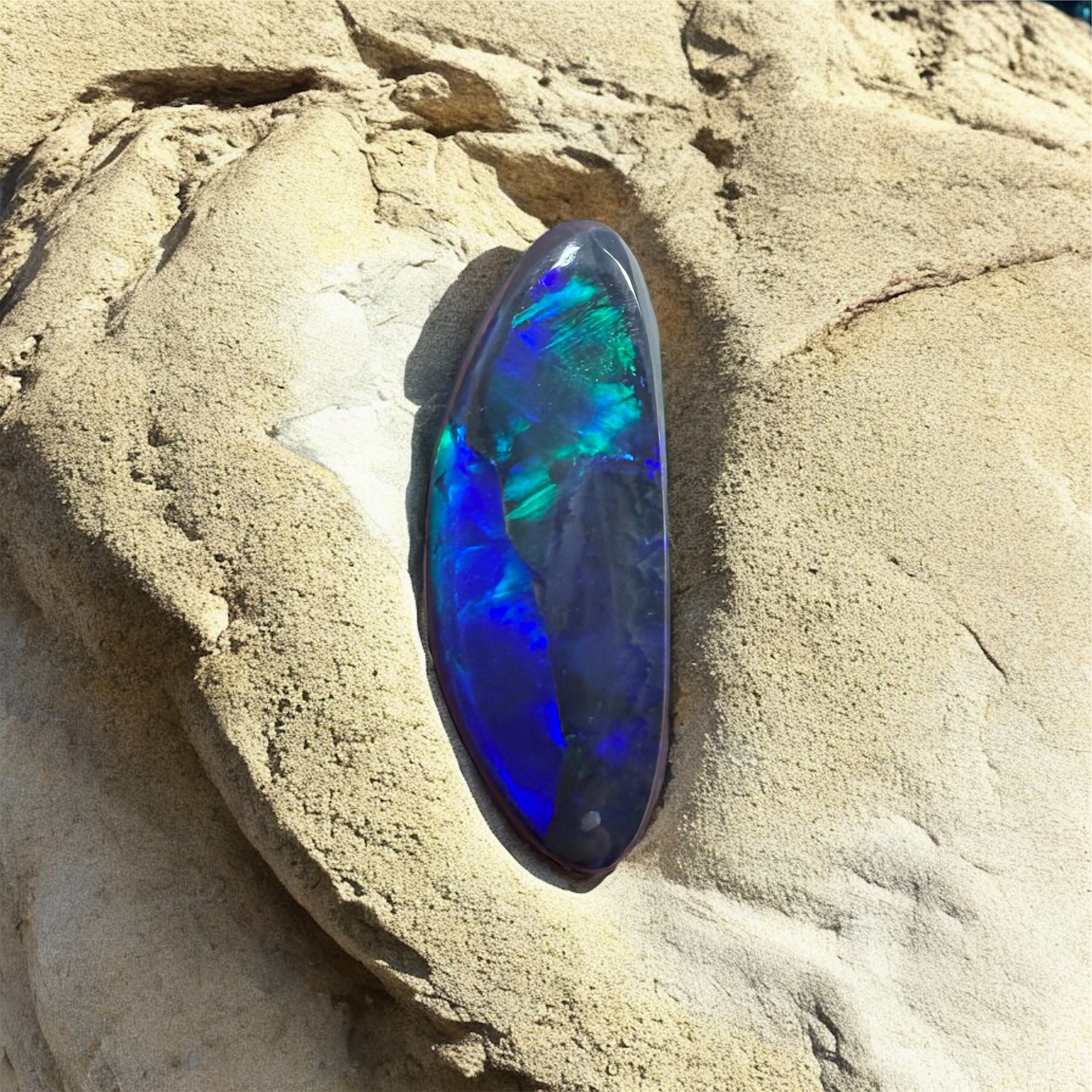 Deep, dark and stormy is how we would illustrate this opal. With its natural potch line and directional flashes of bright green and blue, its lightning effect will be sure to capture your imagination.