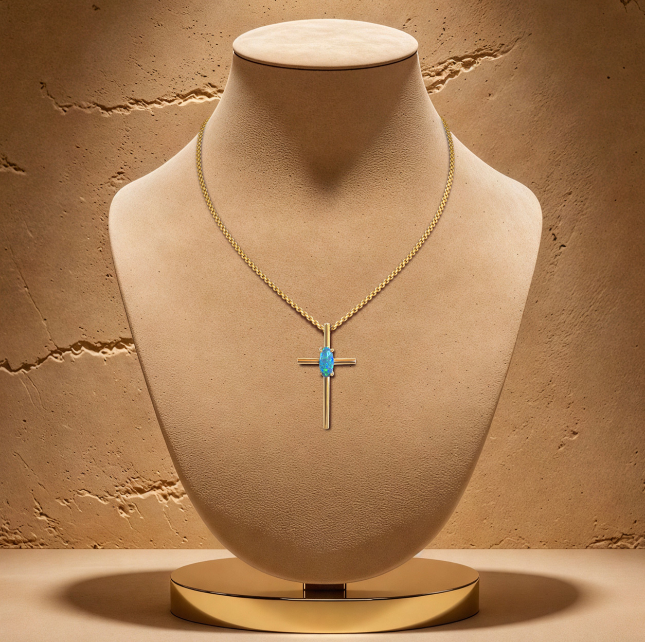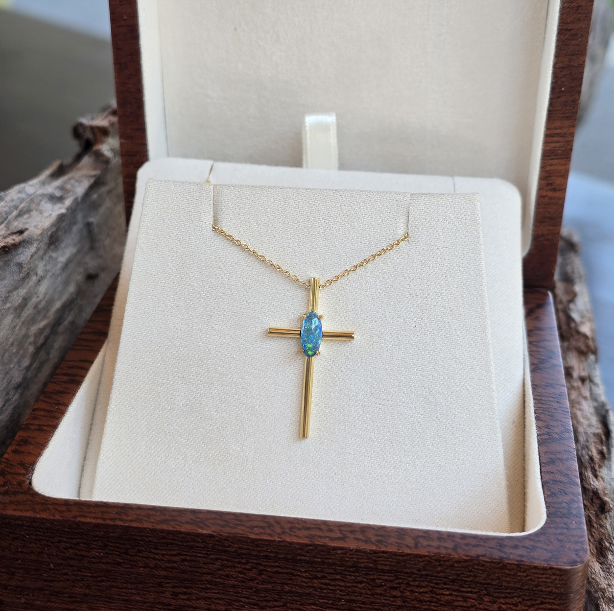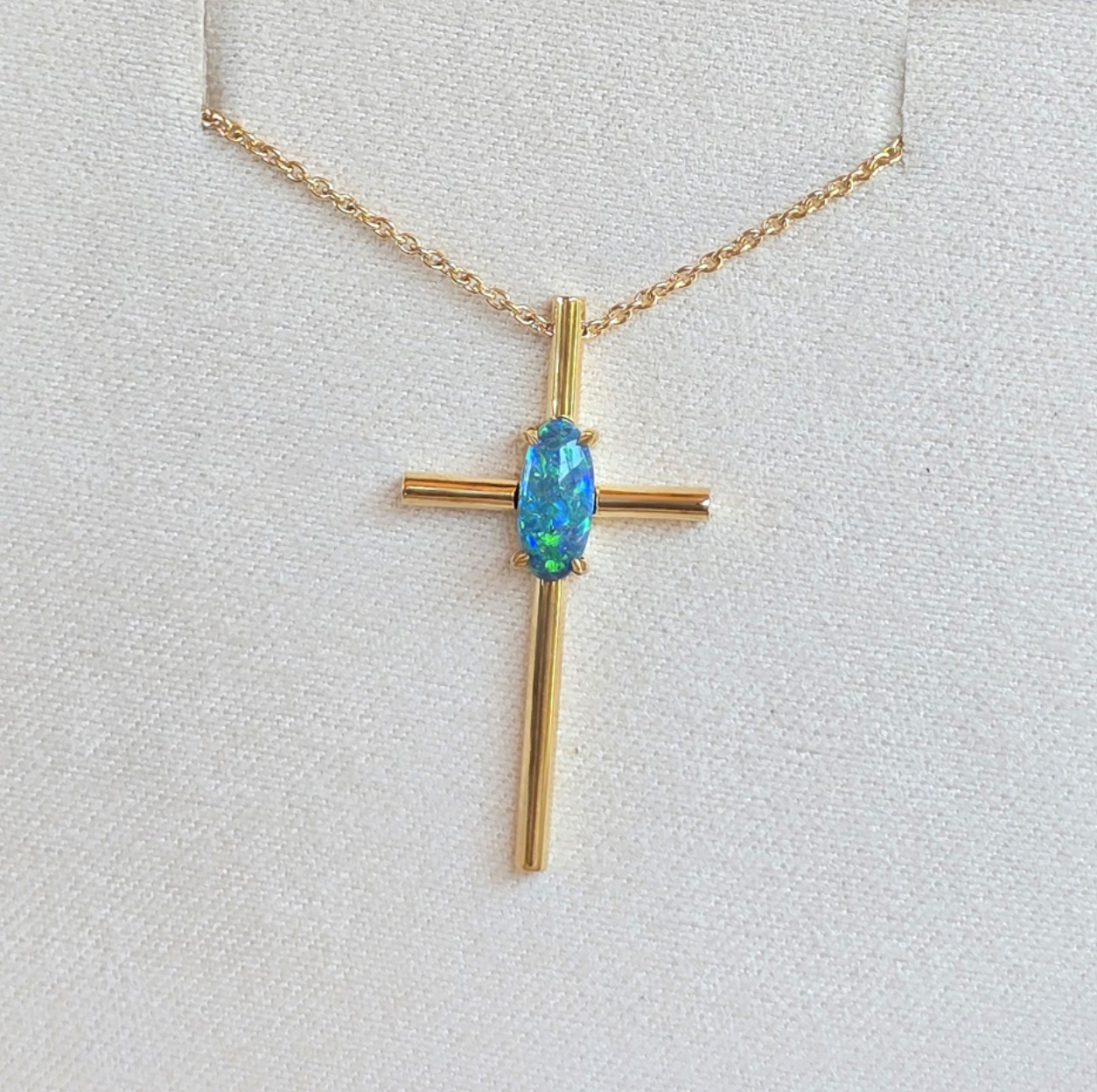 Wee Warra Collection – Yellow Gold and Opal Cross ‘Elysia’