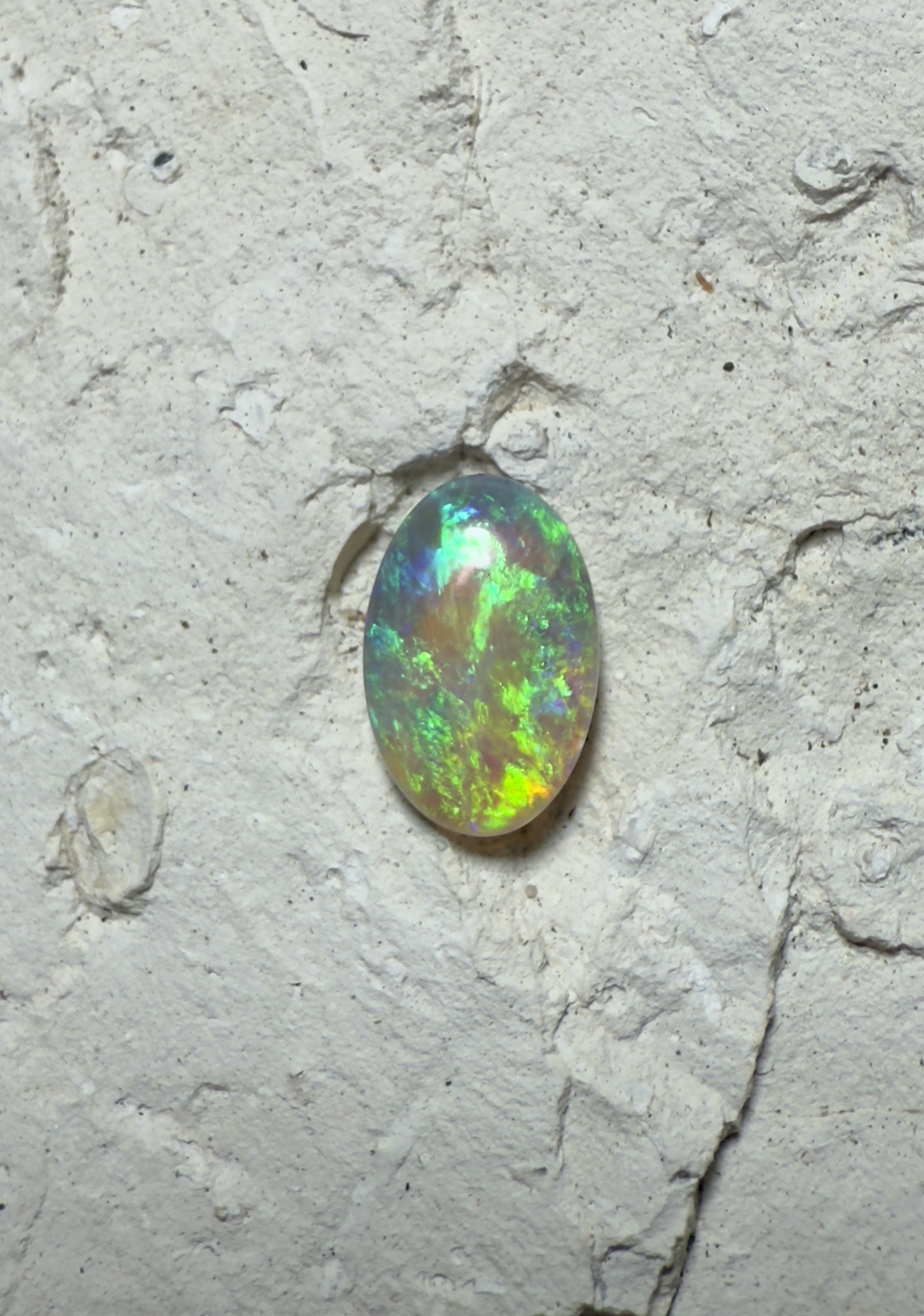 Imagine this tranquil opal set into a pendant or ring — its subtle yet captivating colours will enhance any design and create a piece full of movement and life.
